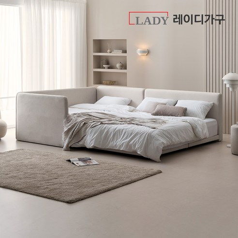 레이디가구 레브 기능성 패브릭 패밀리침대 볼드형SS+Q + 측면가드 + SS풋보드 방문설치, 크림베이지