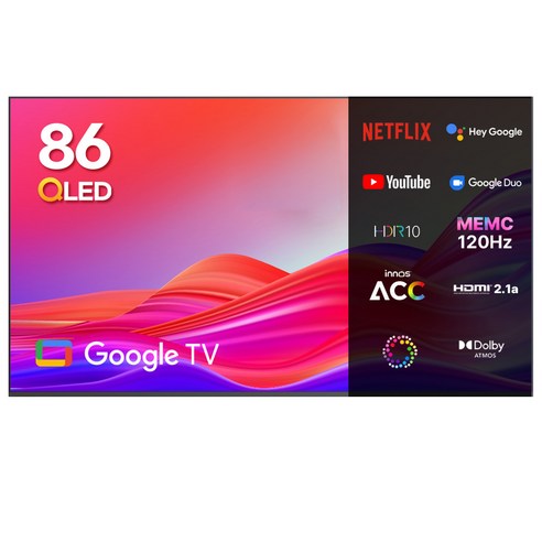 이노스 4K UHD QLED 구글 스마트 TV는 218cm(86인치)의 G86QLED 모델로 벽걸이형 설치가 가능하며, 방문설치 서비스를 제공합니다.