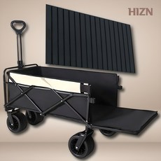 히즈엔 캠핑 웨건 접이식 뒷문개방 카트 확장형 테이블 광폭 대형, 1세트, 블랙 접이식 웨건